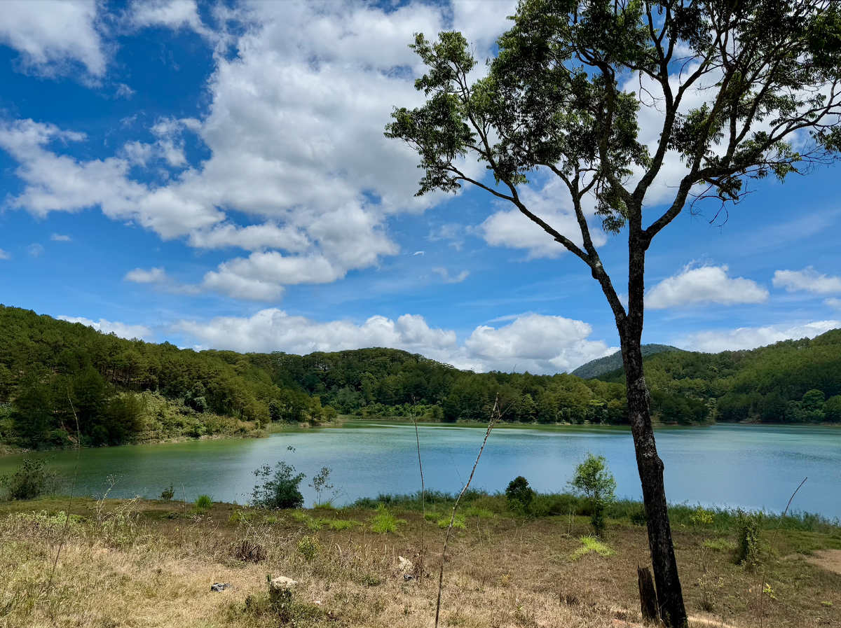 Мне кажется, именно это место сделало Далат одним из самых узнаваемых туристических городов Вьетнама. Во всяком случае, в последние несколько лет уж точно) Далат развивается стремительно: с каждым годом на карте города появляются новые туристические точки. Связано это, на мой взгляд, с развитием туризма в Нячанге - главном городе-курорте Вьетнама, в котором, однако, практически нет достопримечательностей, но который удачно близко расположен к Далату. Я бы сказала, что горный Далат - это город-спутник Нячанга. Вернемся к нашему экскурсионному дню. В первой части я рассказала про стеклянный мост и Долину Любви: Теперь отправляемся в путь на юг Далата. 15 километров на байке по невероятно красивой, немного петляющей дороге, вдоль озер и бескрайних лесов: Отметка на карте: Парковка платная - 10 000 донгов (33 рубля). Вообще, написано, что 8000 донгов, но сдачу нам не дали 😅 Касса и вход напротив: Билет на одного взрослого стоит 120 000 донгов (400 рублей): Фотографируем карту местности и