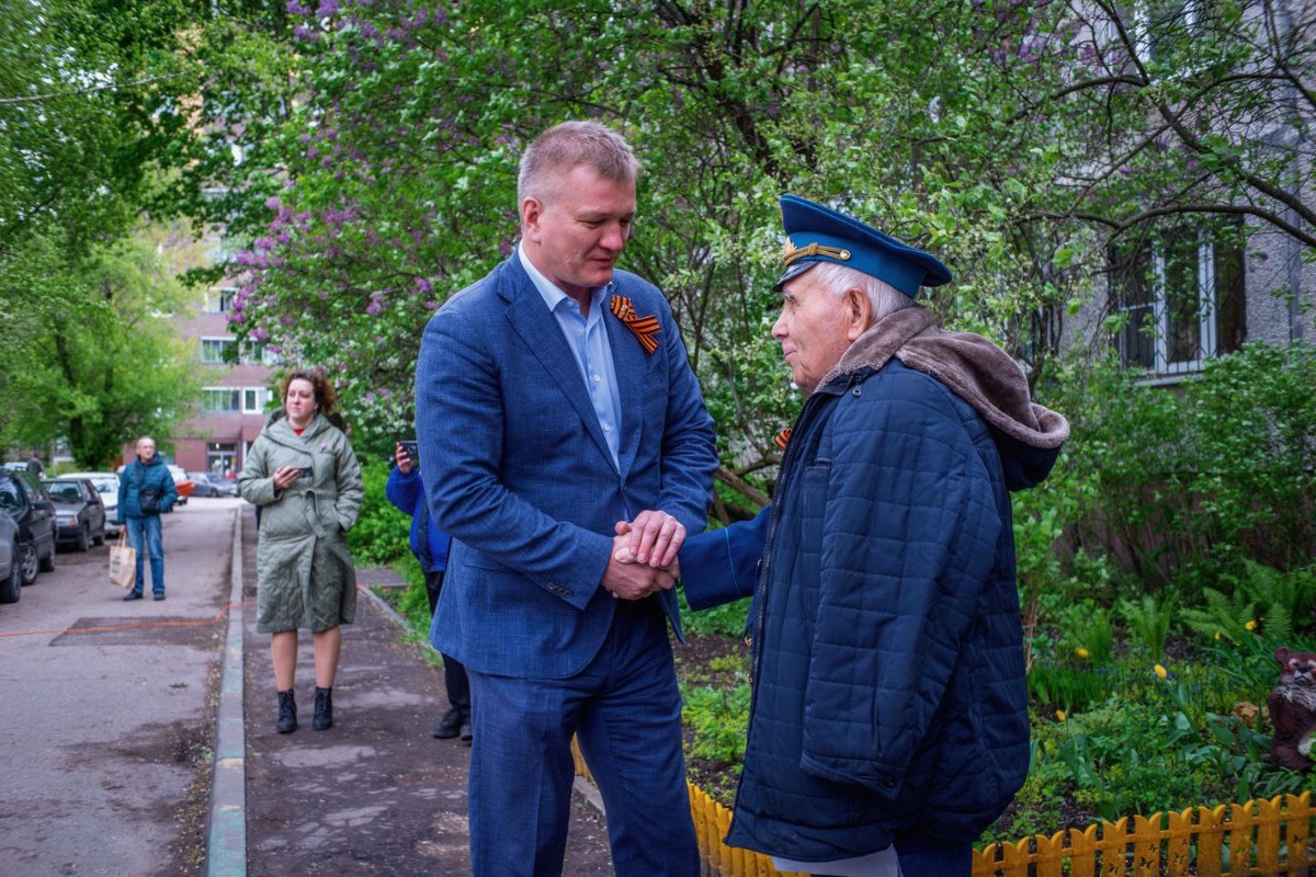 ⭐️ «Единая Россия» традиционно принимает участие в парадах у домов ветеранов из Люберец Депутат Мособлдумы фракции «Единой России» Дмитрий Дениско совместно со сторонниками партии поздравил ветерана Великой Отечественной войны Евгения Хомякова. «Евгений Иванович родился 4 сентября 1927 года в посёлке Октябрьский Люберецкого района. С 1942 по 1945 годы обучался в 1-й Московской артиллерийской спецшколе на Красной Пресне, с которой был эвакуирован в Кемеровскую область. После возвращения в Москву продолжил обучение в 1-м Краснознамённом военном авиационном училище связи имени ордена Ленина. Участвовал в освобождении Венгрии, Чехословакии и Вьетнама. Это достойный путь настоящего героя. От всей души поздравляю Евгения Ивановича с наступающим праздником — Днём Победы! Желаю крепкого здоровья, внимания близких и мирного неба над головой», — отметил Дмитрий Дениско. Парламентарий вручил подарки Евгению Ивановичу от Мособлдумы и партии «Единая Россия». Акции проходят в преддверии 9 мая