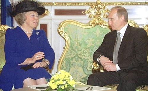 Перед началом переговоров Владимир Путин и королева Беатрикс общались без переводчика. Королева познакомила президента со своей делегацией, а затем они перешли в Зеленую гостиную Большого Кремлевского дворца. Королева Беатрикс пожалела, что ее супруг, принц Клаус, не смог приехать в Москву из-за болезни, и, уже обращаясь к сыну, наследному принцу Виллему-Александру, заметила, что он — частый гость в Петербурге. Однако об этом королева уже не говорила: он предпочитает ездить туда инкогнито.