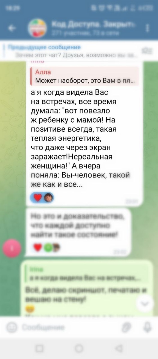 У сына программа 8.1 по рекомендации ПМПК — значит, он будет учиться в обычном классе, в полной инклюзии. Конечно, тревога остаётся: коммуникация даётся ему с трудом. Но раньше я не ощущала этого так остро — в садике он среди детей, которые его знают, общается как умеет. Пока в апреле не случился тот самый переломный момент. Пять дней в больничной палате с нормотипичным сверстником. Пять дней невольных сравнений. Как легко тот мальчик шутил с врачами! Как естественно рассказывал о своих игрушках! А мой сын — не успевает, не дотягивает, не вписывается. К концу срока меня накрыло полной беспомощностью. Это было похоже на падение в яму: я рыдала в каждом моменте, когда оставалась одна. Забыла все наши победы. Видела только пропасть между «нормой» и сыном. И вот в таком состоянии я присоединилась к онлайн встрече клуба Юлии Снежко. Выговорилась. Выплакалась. Будто кричала без звука: «Спасите, я больше не справляюсь». И — о чудо — меня поймали. Не дали разбиться. Нашли те слова, после котор