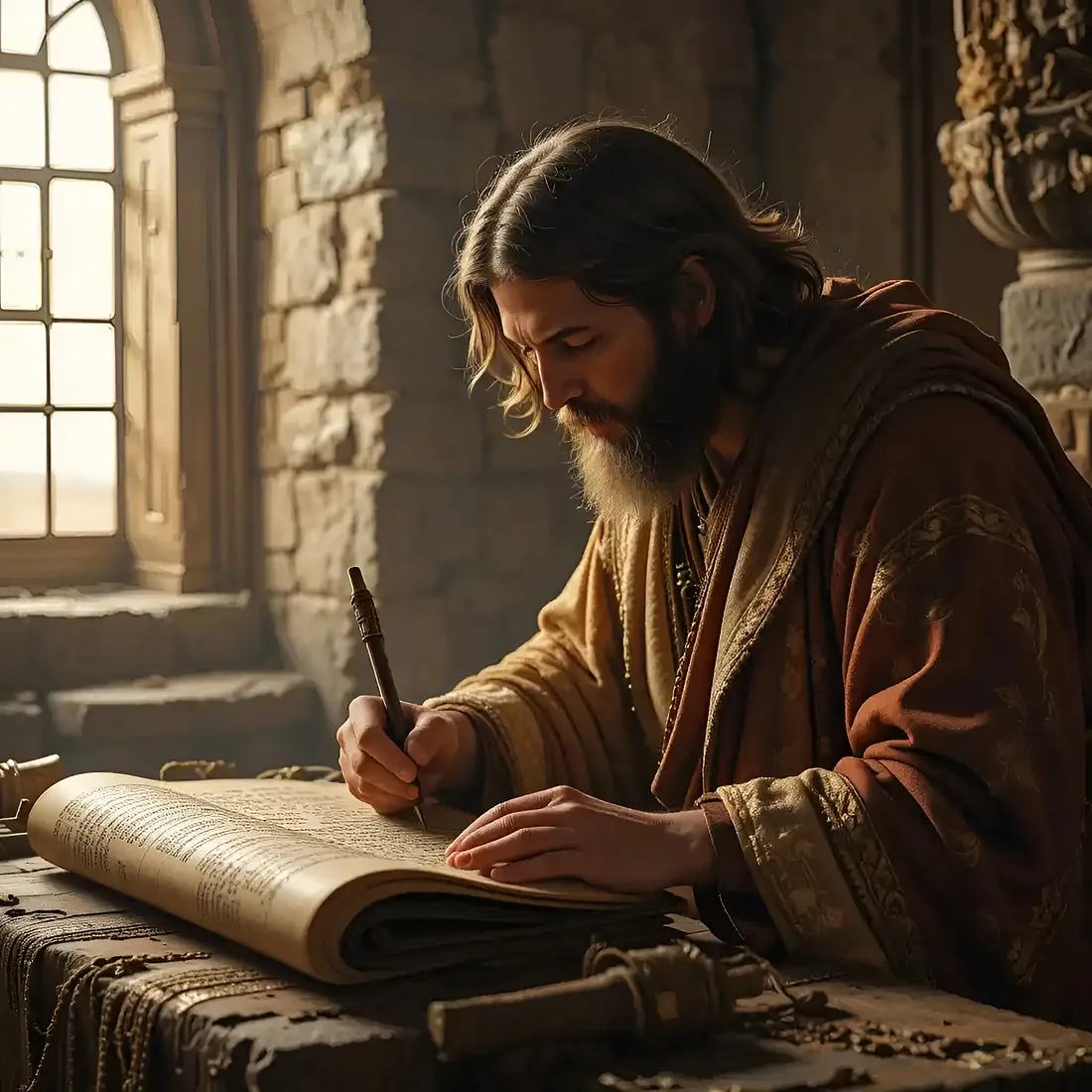 До начала времени Бог написал библиотеку в вечности, предназначенную для того, чтобы формировать народы, открывать Его ум и преобразовывать поколения. Канон — это не просто список книг. Это священное собрание голоса Божьего, заключённого в бумагу, но вдохновлённого вечностью. Изображение, созданное автором с помощью Piclumen