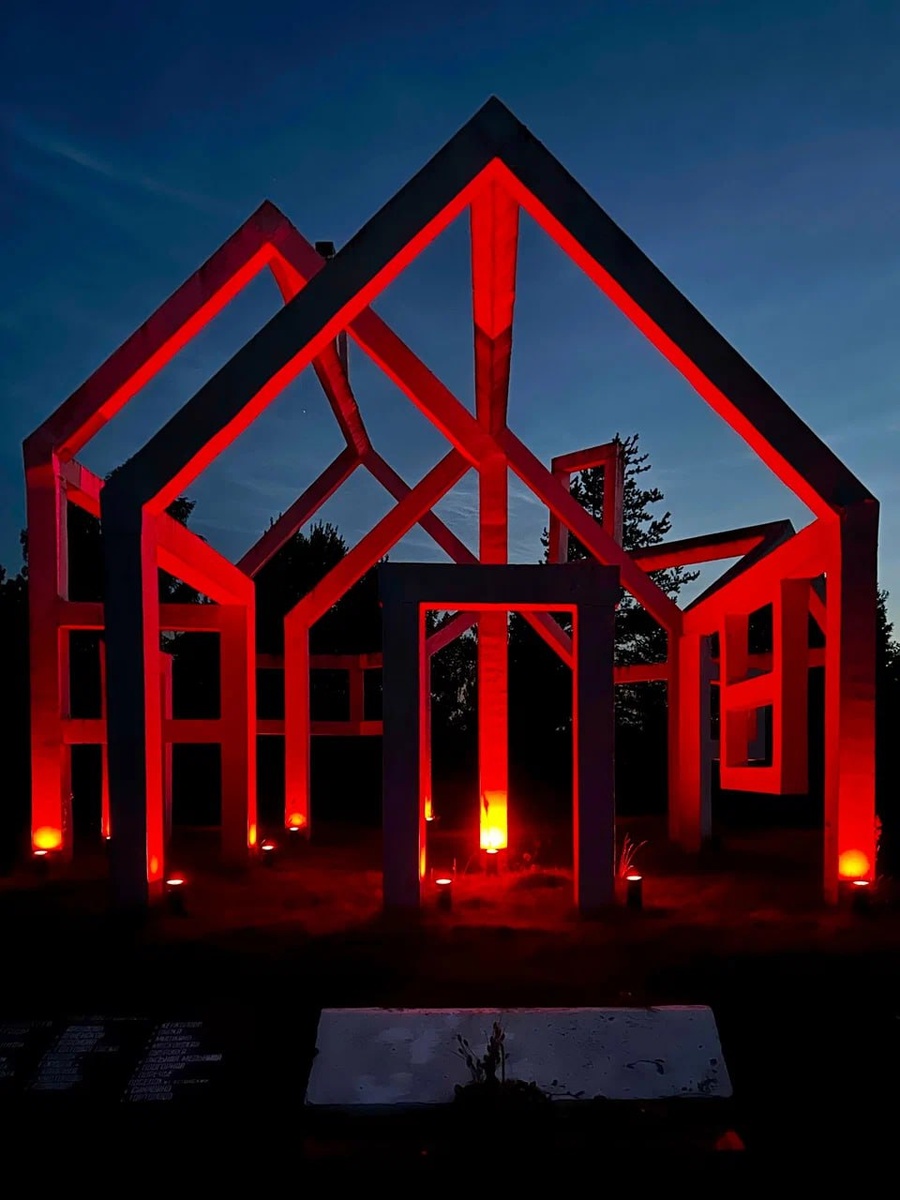 Призрачная деревня под Кировском В 50 километрах от Петербурга, на территории мемориального комплекса «Невский пятачок» можно увидеть необычный и очень атмосферный памятник, увековечивающий период ожесточённых боёв за Ленинград. Это заставляющее сердце замирать напоминание о том, что во время войны здесь было уничтожено больше трех десятков деревень. Каждый вечер монумент, напоминающий остов деревенского дома, освещается красной подсветкой, которая создает ощущение, будто дом горит здесь и сейчас. 📍 Кировское городское поселение #локация Подпишись на Вокруг Питера