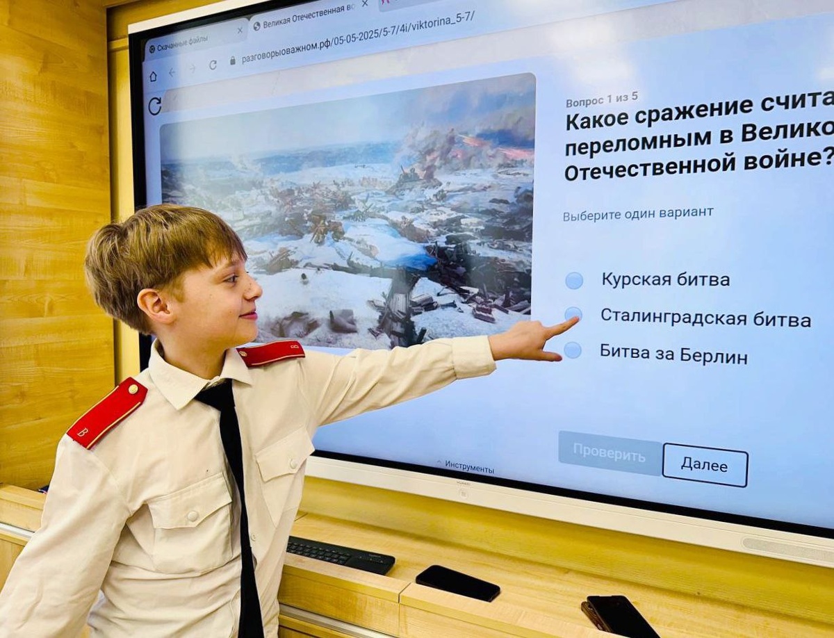 «Только вдумайтесь: если каждого погибшего в Великой Отечественной войне почтить минутой молчания, мир замолчит почти на 80 лет. Невозможно представить масштаб трагедии. Годы потихоньку отдаляют нас от ужасов тех лет, но связь поколений крепка и не позволит забыть своих героев», – Марина Борисовна Ланкина, учитель истории и обществознания. 🎗«Разговоры о важном» на этой неделе посвящены важной дате – 80-летию Великой Победы! 🧧9️⃣〽️🅰️🧡 1945 года – день, который навсегда вошел в историю и останется в памяти не только нашей страны, но и всего мира, день, когда закончилась самая кровопролитная и разрушительная война. 💡На занятии ребята посмотрели интервью с ветеранами Великой Отечественной войны. Сейчас им больше 90, а кому-то и больше 100 лет. А тогда, в 40-е года, они были такими же школьниками, которым пришлось очень быстро повзрослеть... «Мой прадедушка – пример мужества и героизма. Он прошел всю войну, а ведь в 1941 году был еще мальчишкой. К сожалению, мне не довелось с ним п