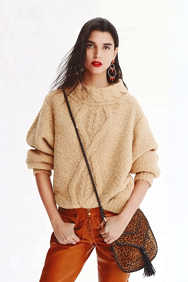 Игра с текстурами добавляет образу глубину. Сочетайте гладкие ткани (шёлк, хлопок) с фактурными (твид, букле, крупная вязка). Такие сочетания всегда смотрятся особенно стильно — будто в образ вложена забота и внимание к деталям.