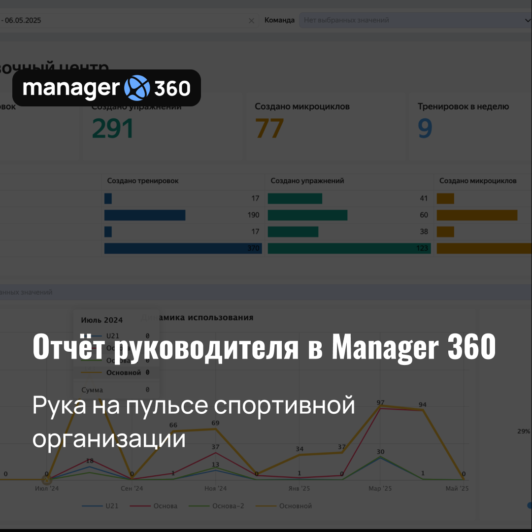 Когда мы говорим о спортивных клубах, особенно футбольных, на первом плане всегда оказываются тренеры, игроки и медицинский штаб. Именно они обеспечивают результат на поле, борются за победы и формируют лицо команды. Это абсолютно справедливо — без сильной скамейки и мотивированной раздевалки не будет трофеев. Но за пределами поля, в офисах и кабинетах, не менее важную игру ведут управленцы — топ-менеджмент клуба. Их действия зачастую определяют, насколько устойчив клуб в долгосрочной перспективе. В Manager 360 мы уверены: успех на поле невозможен без порядка за его пределами. И для того чтобы управлять клубом как системой, нужен инструмент, который позволит принимать обоснованные решения, видеть реальную картину происходящего и оперативно реагировать на изменения. Для этого мы создали Отчёт руководителя — стратегический обзор ключевых процессов клуба, без которого современный спортивный менеджмент просто не может существовать. Звучит резко? Возможно. Но именно так мы задаём вопрос дир