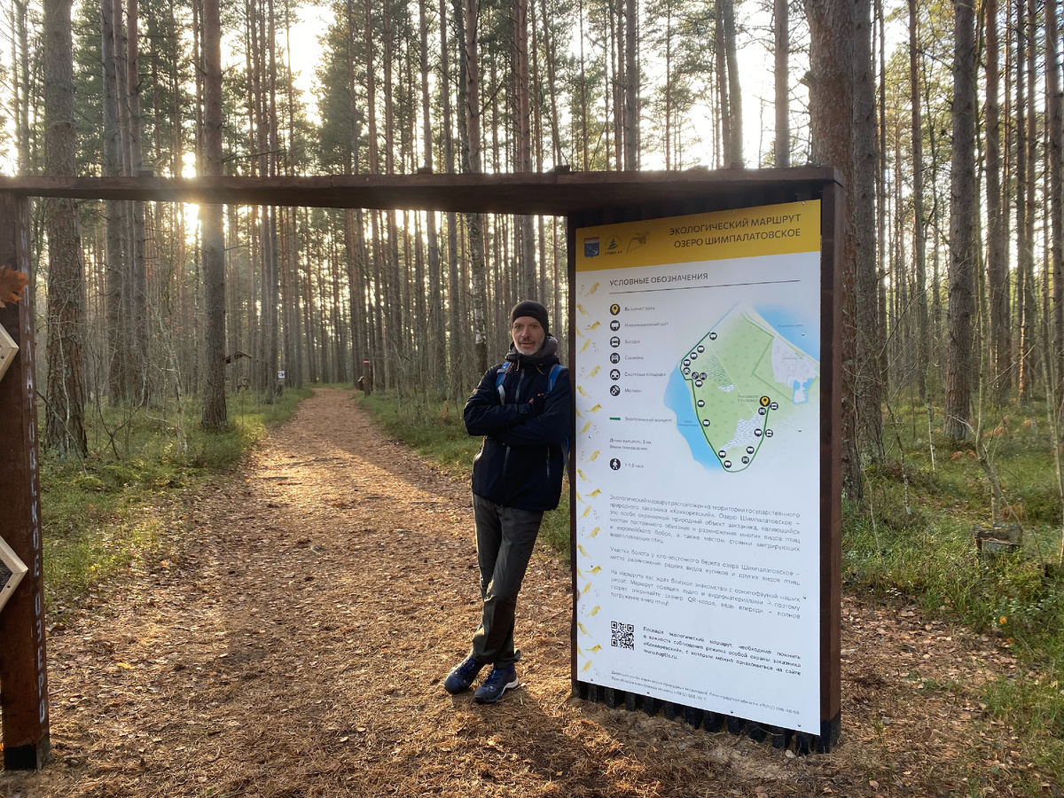 Новый экомаршрут "Озеро Шимпалатовское" в заказнике "Кокоревский" был открыт в октябре 2024 года. "Тропа знакомит посетителей с орнитофауной Ленинградской области" или, проще говоря, здесь все о птицах :) Основная информация, представленная на эколого-просветительских щитах вдоль тропы, разработана в сотрудничестве с известным биологом и экспертом по птицам Павлом Глазковым и подана максимально познавательно для посетителей всех возрастов. На стендах размещены QR-коды. Можно пройти по ним и посмотреть видео про данную птицу или услышать её голос. Некоторые стенды будут особенно интересны детям - кубики, пазлы и другие предметы можно трогать и перемещать, при этом получая полезную информацию о природе. На 2,5 км тропы есть три зоны со скамейками. На тропе есть несколько интересных "фишек", которые нам понравились. Щит, на котором отображён размах крыльев различных птиц, обитающих в нашем регионе. Можно проверить размах своих "крыльев" :) Фотозона с крыльями. Фото пришлось делать прот