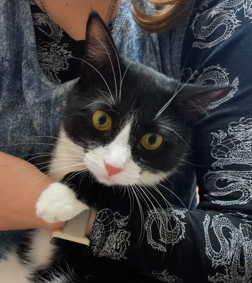 Здравствуйте! Рисунок на носу у кошки, или, точнее, узор из линий и текстуры на подушечках носа, уникален для каждой кошки, как отпечаток пальца у человека. Этот узор не говорит ни о чем конкретном в плане характера, породы или состояния здоровья кошки, кроме как об ее индивидуальности. Что нужно знать о рисунке на носу у кошки: • Индивидуальный узор: Как уже говорилось, у каждой кошки уникальный рисунок на подушечках носа, образованный мелкими бугорками и линиями. • Генетическая детерминированность: Формирование этого узора определяется генетически и является постоянным на протяжении всей жизни кошки. • Идентификация: В теории, рисунок на носу можно использовать для идентификации кошки, как отпечатки пальцев у людей. Однако, на практике это сложный и трудоемкий процесс, поэтому другие методы идентификации (микрочип, ошейник с адресником) используются чаще. • Отсутствие связи с характером или здоровьем: Рисунок на носу не имеет никакой связи с характером, темпераментом, породой и