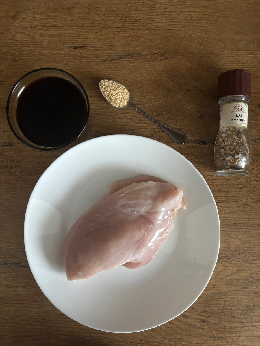 Всем привет! Это Оля. Сегодня хочу поделиться с вами рецептом очень вкусного куриного филе) Данное блюдо прекрасно подойдет для легкого ужина без вреда для фигуры. Нам понадобился: Куриное филе 300 гр Соевый соус 100 мл Сухой чеснок 1 чайна ложка Приправа для курицы 1 чайная ложка Рецепт до безумия прост))) Куриное филе разрезаем вдоль на 2 части. Смешиваем соевый соус, чеснок и приправу и заливаем филе. Оставляем минимум на 1 час мариноваться. Выкладываем филе на раскаленную сковороду с капелькой оливкового масла. Жарим примерно по 5 минут с каждой стороны! Блюдо готово! Приятного аппетита!😋