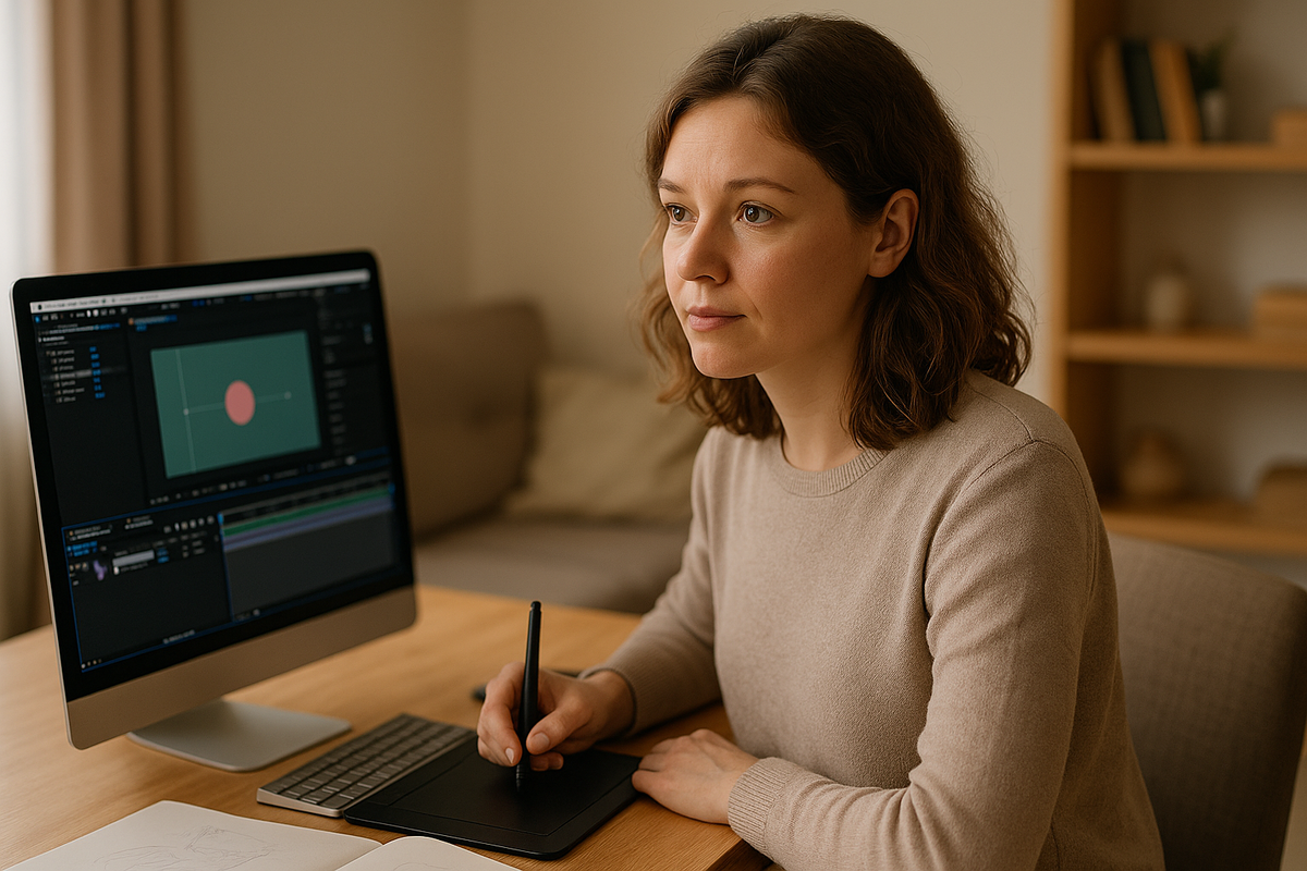Когда я наконец приняла решение и с замиранием сердца оплатила курс «Моушн-дизайнер» от GeekBrains, я сразу получила доступ к первому модулю. Открыв программу After Effects, я чуть не потеряла дар речи — так много кнопок, панелей и настроек! Всё казалось сложным и абсолютно непонятным. Но, к счастью, первые пошаговые видеоуроки помогли мне разобраться, и вот, следуя инструкциям, я выполнила свое первое практическое задание — заставила текст двигаться на экране. Это была маленькая победа, но для меня она означала настоящее волшебство — ощущение, что я, наконец, что-то поняла и смогла сделать!