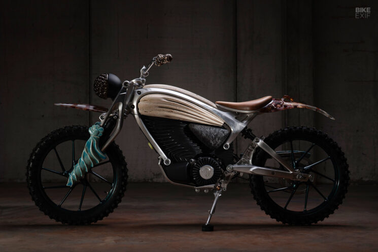 В прошлом месяце в выставочном центре Fiera Milano Rho прошла 63-я выставка Salone del Mobile, известная как Миланская неделя дизайна. Это событие собрало лучших мировых дизайнеров, включая такие бренды, как Gucci, Louis Vuitton, Prada, Dior и Hermès. На выставке были представлены различные направления дизайна: от мебели до концептуальных решений. Одним из самых ярких экспонатов стала инсталляция «Мотототем», созданная мультидисциплинарным художником Маттиа Биаджи из Лос-Анджелеса. В центре внимания оказался электровелосипед Royal Enfield Flying Flea, трансформированный в настоящее произведение искусства. Кастомайзинг мотоциклов давно стал самостоятельным направлением, где мотоциклы воспринимаются как произведения искусства. Маттиа Биаджи, известный своими работами в моде и интерьере, подошёл к этой идее с особым энтузиазмом. Он увидел в миниатюрном электровелосипеде Flying Flea FF.C6 настоящий холст для творчества. Flying Flea — это полностью электрический суббренд Royal Enfield, вдох