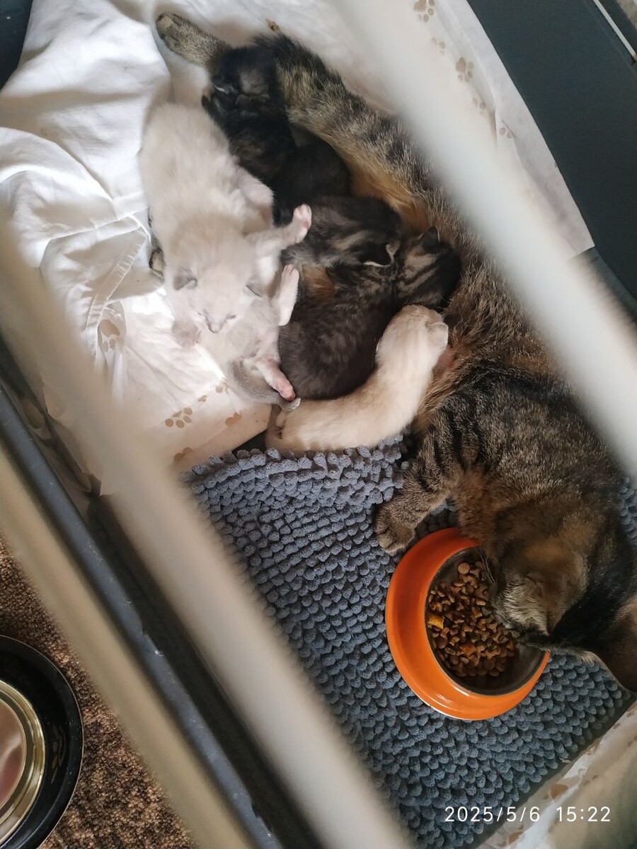 Сходила в гости к Марсику и Котофею, навестила Сафари с малышами!)🤗 У семейства все хорошо! Кошка чувствует себя прекрасно, котята растут как на дрожжах и почти все открыли глазки!)👍 Марсик спрятался, а вот Котофей с удовольствием поиграл и пообнимался со мной!)👍 Котят немного покормила смесью, но они снова поползли за маминым молочком!)🤗❤️ Большое, спасибо, Татьяне за Помощь с кошачьим Семейством!🙏 +79114803040 +79969591184