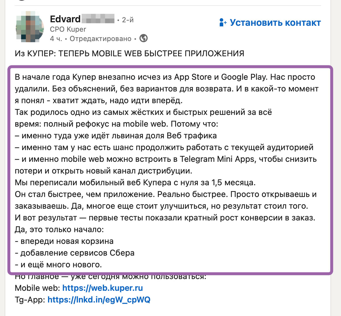 Показалось интересным, почитайте на картинке внимательно. Такое ощущение, что традиционные мобильные приложения стухнут в РФ, в том числе из-за санкций!