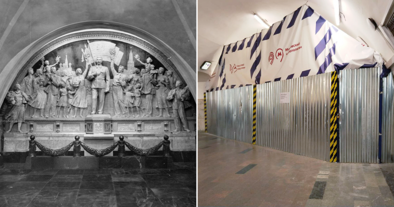 Но недавно кусок стены в переходе огородили. Многие не обратили на это внимания — мало ли, что там ремонтируют. Тем не менее главный инсайдер московского метро канал «РМТМ» сообщает, что руководство планирует создать на этом месте копию барельефа со Сталиным.