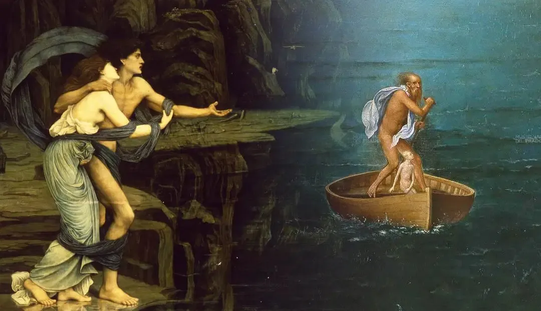 После смерти душа сначала попадала к главной реке подземного мира — реке Стикс. Если человека хоронили по греческому обряду с золотой драхмой, он мог заплатить перевозчику Харону за переправу. Без монеты душа была обречена вечно бродить по берегу.