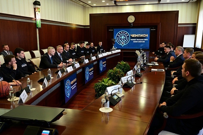 Игроки уфимского баскетбольного клуба «Динамо» стали чемпионами Высшей лиги и обеспечили себе место в Суперлиге чемпионата России. С успешным завершением сезона спортсменов и тренерский штаб клуба поздравил глава Башкортостана Радий Хабиров на встрече в Доме республики. — Сезон получился красивым и ярким, вы показали прекрасные результаты, — сказал руководитель региона. — Из 42 матчей, которые вы провели, в 39 победили, причем 30 игр выиграли подряд. И это здорово! Важно, что на вас равняется молодежь, что ваша игра вдохновляет детей и школьников на занятия спортом. Главный тренер баскетбольного клуба «Динамо» Евгений Горев поблагодарил главу Башкортостана за поддержку развития спорта в республике и вручил памятный мяч с автографами чемпионов. — Неделю назад случилось историческое событие для нашего клуба: в год 100-летия общества «Динамо» мы стали чемпионами. Этого результата мы добивались всей командой, прилагая титанические усилия ради общей цели. Сегодня с уверенностью можем сказат
