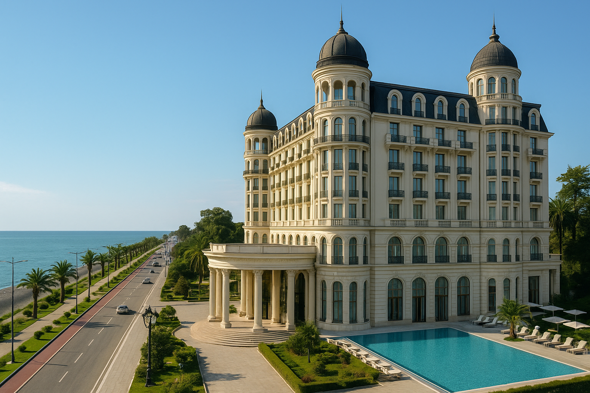Исторический пятизвёздочный отель в центре Батуми, рядом с Приморским бульваром и площадью Европы. Здание в стиле сталинского ампира, окружено парковой зоной.