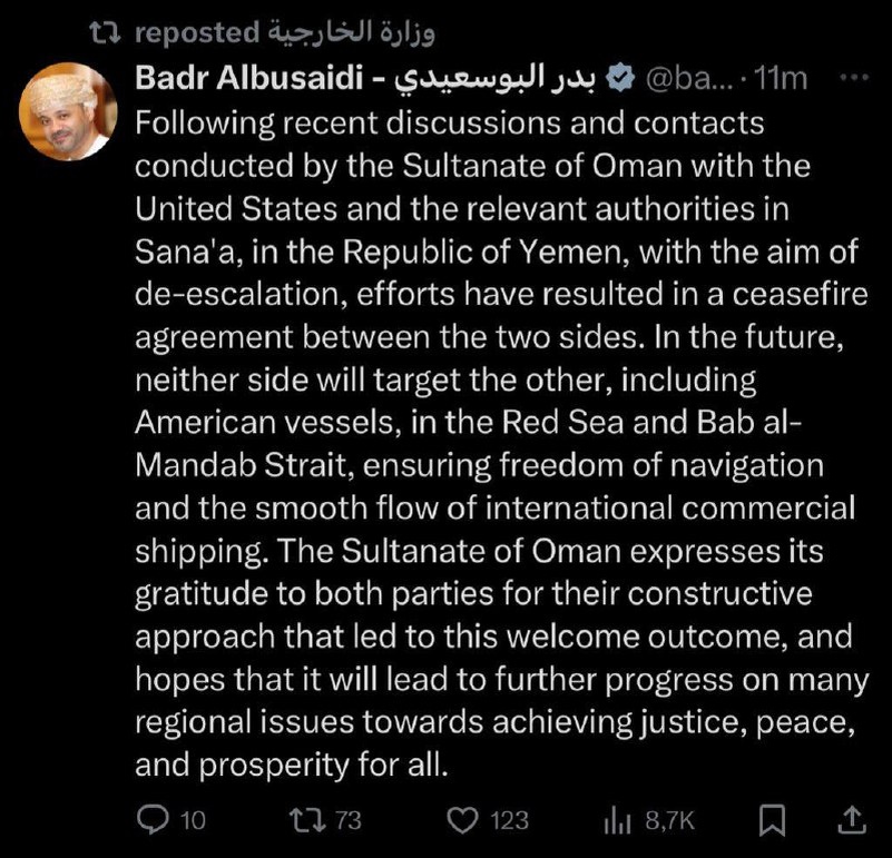 Oman brokers PEACE between Houthis and Trump