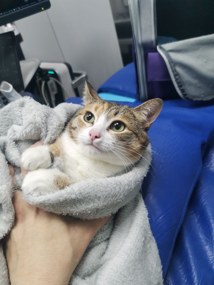 Наша Софочка кошечка с непростой судьбой, да впрочем, как и почти все наши питомцы. С большим трудом несколько лет назад Софа была поймана в поле, где обитала даже в лютый мороз, тем самым застудившись очень здорово. Конечно же все это не могло не оставить след на здоровье малышки. Нескончаемая череда циститов так и преследует Софочку все эти годы. Только обрадуемся, что наконец-то все хорошо, кошечка активная, весёлая, как снова обострение. И вот позавчера опять заметили, что Софочка долго сидит в лоточке, а в туалет сходить не может. И что самое важное, надо обязательно на УЗИ, потому что у неё были кристаллы оксалаты, очень сложные. Длительное кормление спецкормом и лечение вроде как избавили её от них, но всегда есть опасение, что вдруг снова камни. Вчера были в клинике. По результатам УЗИ утолщение стенок мочевого пузыря, что говорит о сильном цистите. Взяли проколом мочу на анализ, в результате чего моча повышенной плотности и в ней кровь. Кристаллов нет🙏. Опять идиопатический ц