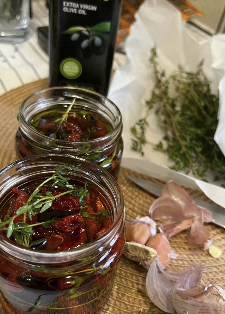 Томаты- это отличный источник калия и витаминов С, К и А. Кроме того, помидоры особенно богаты ликопином, важным фитонутриентом с антиоксидантными свойствами. А вяленые томаты стимулируют работу кишечника и устраняют запоры Улучшают состояние сосудов и работу миокарда, растворяют вредный холестерин и предупреждают появление атеросклероза Обладают мочегонным и желчегонным действием, предотвращают образование отеков, снижают артериальное давление. А самое главное они - очень вкусные и ароматные! Ингредиенты (на 4 порций): 🥣Томаты — 1кг (сливовидной формы); 🥣Оливковое масло extra virgin — 300 мл; 🥣Соль розовая гималайская — по вкусу (или любая другая); 🥣 Смесь перцев — по вкусу; 🥣Тимьян свежий — по вкусу; 🥣Чеснок - 3 зубчика. Приготовление: Вымываем и высушиваем спелые томаты. Потом разрезаем томаты на половинки или четвертинки, далее нужно вырезать плодоножки и удалить из помидоров семена. Противень или решетку застелить пергаментной бумагой и разложить томаты плотно друг к дру