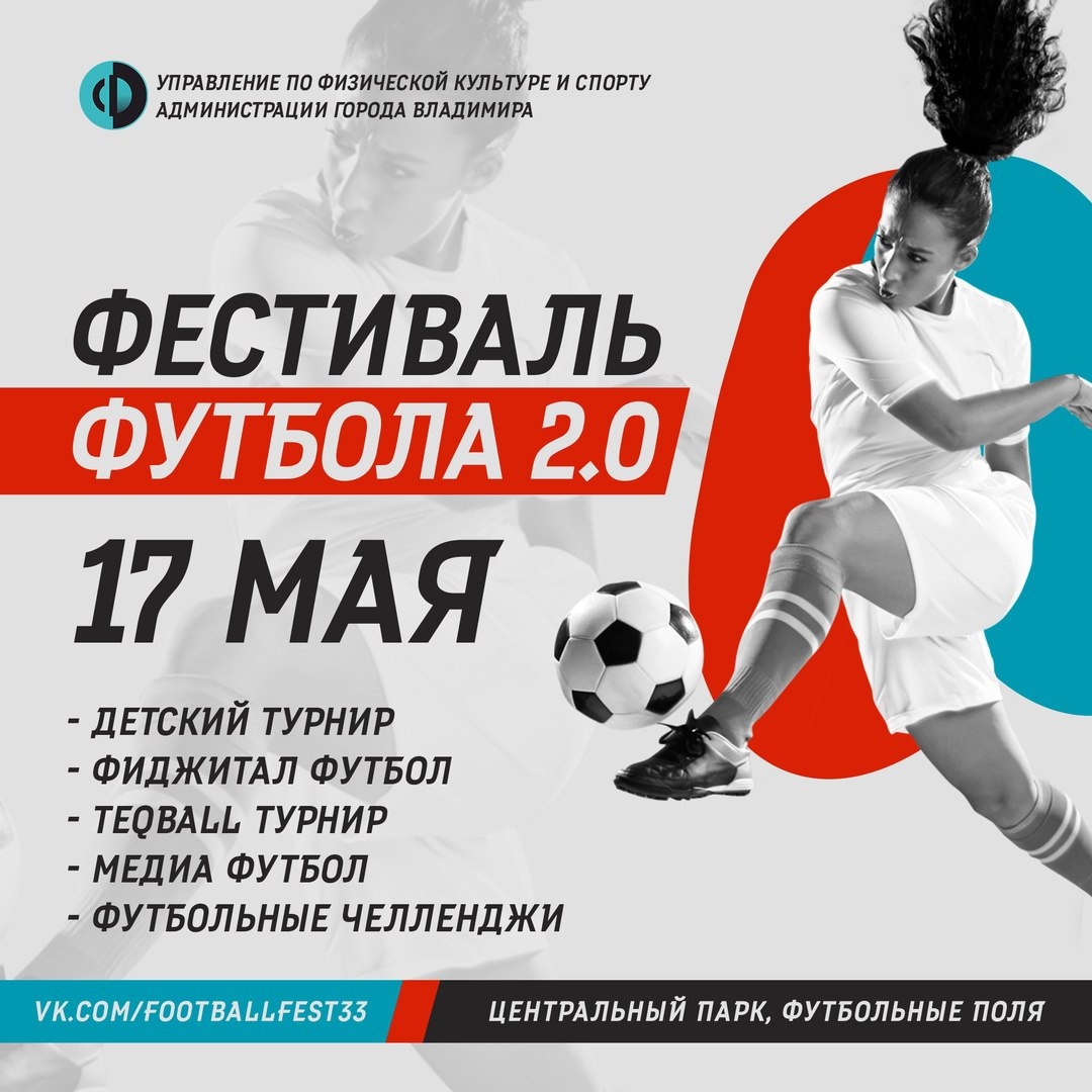 Привет! Слышал новость? Главное футбольное событие этого месяца состоится во Владимире! 17 мая на площадке с искусственным покрытием по адресу Мира, 36 пройдет самый яркий футбольный праздник года — Фестиваль футбола 2.0. Приходи обязательно! Будет весело, круто и интересно! А самое главное — ждут именно ТЕБЯ! Не забудь про удобную обувь и отличное настроение!💚 До встречи на поле! ⚽