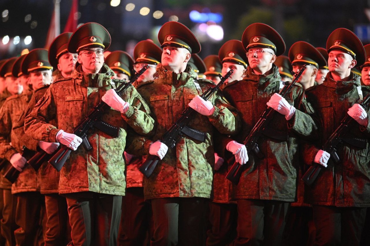 Пешие колонны заканчивают построение перед стартом генеральной репетиции парада Победы в Минске