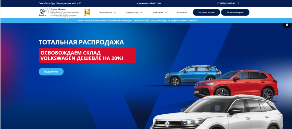 Сигма Моторс — это автосалон в Санкт-Петербурге. Позиционируется, как официальный дилер Volkswagen в России. Но это ложь. На владельца есть судебные иски о защите прав потребителей. Салон уличен в подделке положительных отзывов. Сигма Моторс на Петроградской набережной позиционируется как официальный дилер Volkswagen. Но это неправда. В списке официальных дилеров на сайте бренда данного центра нет. Более того, в Питере нет ни одного официального дилера данной марки. То есть, дилерский центр Сигма Моторс продает новые Фольксвагены, но как серый дилер. Также он занимается продажей подержанных авто различных марок. Правда, на сайте нет верифицированных отчетов о состоянии авто, поэтому низкие цены вызывают большие вопросы. К тому же, нет никаких гарантий, что фото настоящие. Владелец АЦ Сигма Моторс на Петроградке — ООО «Сигма Моторс ГмбХ» (ИНН 7825507813). Компания была создана в 2003 году. Руководитель компании — Мандзюк Алексей Валериевич. Он имеет признаки массового руководителя — чел
