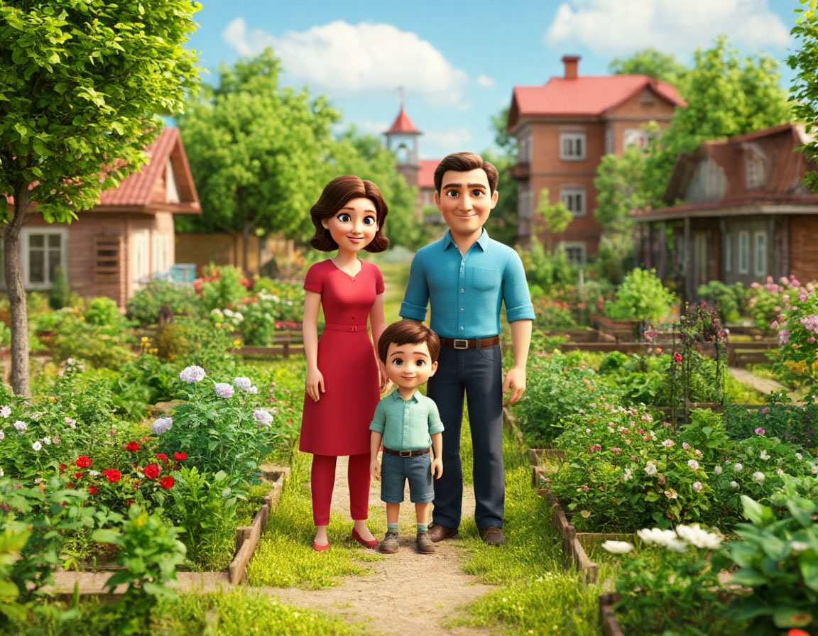В маленьком городе, утопающем в зелёных садах и цветах, жила семья, состоящая из мамы, папы и сына Вани.