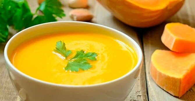 - В состав тыквы входят витамины и микроэлементы, которые очень важны для поддержания иммунитета и помогают организму с обменом веществ. Кроме того, суп из тыквы – это низкокалорийное блюдо, содержащее в себе карнитин, способствующий сжиганию жира.