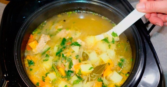 Если решим приготовить суп с курицей или вообще постные щи, то можно обойтись функцией “экспресс приготовление”. Получится очень быстро и вкусно.