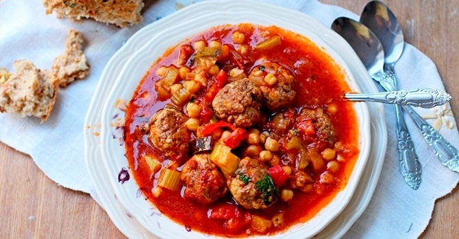 Суп с томатами, фрикадельками и нутом очень любят в Турции. Сочетание томатной кислоты с ореховым привкусом и мясными шариками делает блюдо сытным и аппетитным.