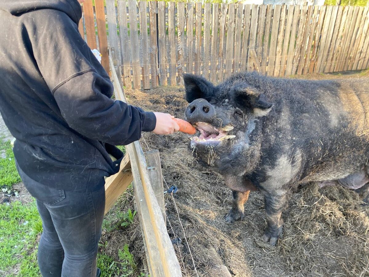 Ну и что, что на улице май? Это вовсе не повод не устраивать Новый год, особенно если очень хочется. Тем более, что и снег в мае выпадает уже второй год подряд (а в конце декабря его было совсем чуть-чуть). И сегодня Дедом Морозом для всего Святополя стала моя подруга, приехавшая к нам с целой сумкой подарков – для нас и, конечно же, для зверей. Раву достался классный оранжевый мяч, который, правда, выдержал минут 5 против зубов алабая, а потом сдался и сдулся. Но меньше радости от этого он приносить не стал: просто скакал уже не так бодро. Грызть и кидать его можно было все равно. Лимону приехали прикольные кошачьи «стики» с пюре и дразнилка в виде мышки, которые «не водятся даже в Дагестане» (откуда предки нашего кота). Благодарный чаузи даже поел из ее Лизы и поиграл с игрушкой. Коням, Бэкону, козам собакам и кошкам и даже птицам (!) подруга привезла много-много всяких вкусных и полезных лакомств. Ни про кого не забыла. И для нас тоже угощения припасла. Конечно же, Лиза зашла и в во