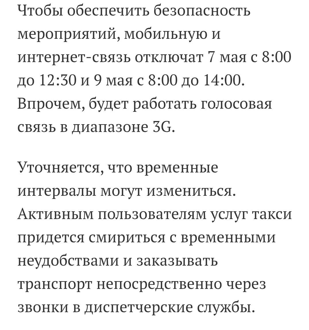 Также могут не работать терминалы оплаты в магазинах и маршрутках. Возможно, стоит подумать об использовании наличных в этот период времени. Источник: mk.ru/moscow/2025/05/06/faksy-i-golubinaya-pochta-uzhe-zavtra-moskvichi-ostanutsya-bez-mobilnogo-interneta.html @gb1gb2 Прислать новость и по другим вопросам t.me/y1428