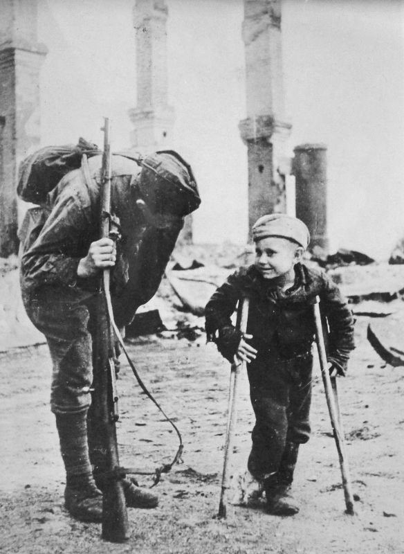 ⏳ Боец Красной армии беседует с десятилетним Володей Лукиным в освобожденном Себеже. Лишившись крова, мальчик отморозил себе ноги. 1944 год Тяжелое фото, но мы должны помнить, какой ценой нашему народу далась победа в Великой Отечественной войне. 🇷🇺 Подпишись на «Россия — это я!»
