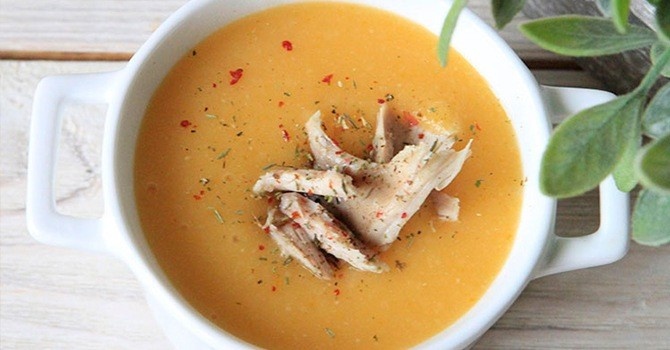 Приветствую вас, дорогие читатели! А не сварить ли нам по пошаговому рецепту куриный суп-пюре? Это сбалансированное, легкое, диетическое блюдо, которое не требует больших затрат времени и денег. А как его приготовить, я сейчас расскажу и покажу. Содержание Супы-пюре благодаря своей консистенции легко усваиваются организмом, облегчают процесс пищеварения. Мясо курицы – диетический продукт, в котором много белка и практически нет жира. Поэтому блюдо, которое мы сегодня готовим, идеально подходит для лечебно-диетического питания. Добавим ему чуточку калорийности и приготовим со сливками. Поверьте, оно того стоит! Куриная грудка 1 шт. Картофель 3 шт. Лук репчатый 1 шт. Сливки 20 % 150 мл. Соль по вкусу. Перец черный молотый по вкусу. Лавровый лист 3 шт. Вода 1.5 л. Масло растительное ст. л. Сухарики по желанию. На 100 грамм: Калории: 47,1 ккал Белки: 4,73 г. Жиры: 2 г. Углеводы: 2,56 г. Шаг 1 из 10 Грудку заливаем холодной водой и ставим вариться на средний огон