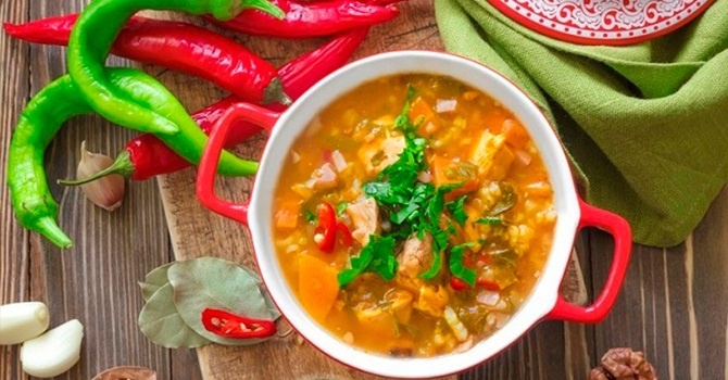 - Харчо – кладезь витаминов группы B, PP, E и минералов. Его ингредиенты снижают холестерин и сахар в крови, улучшают работу мозга и даже обладают противовирусными свойствами. А все благодаря тому, что закладываются в самом конце приготовления.
