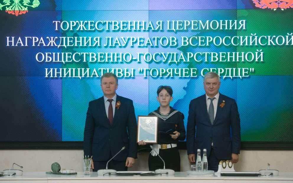 Четверо воронежцев, среди которых двое – школьники, стали лауреатами Всероссийской общественно-государственной инициативы «Горячее сердце». Молодых людей наградил губернатор Воронежской области Александр Гусев. Об этом во вторник, 6 мая, сообщили в пресс-центре регионального правительства. По информации структуры, цель инициативы – выражение признательности молодым людям до 23 лет, проявившим неравнодушие и совершившим героические поступки. Сегодня глава региона наградил четырех юношей, чьи поступки могут быть примером для взрослых. Так, ученики 7 класса Новоусманской школы №3 Роман Ашихмин и Дмитрий Митрошенков прошлой зимой спасли мальчика, провалившегося в яму с холодной водой. Он пытался выбраться, но ничего не получалось. Тогда на помощь пришли ребята, которые схватили пострадавшего за руки и вытащили. Студенты Воронежского авиационного техникума имени В.П. Чкалова Иван Долбилов и Даниил Харламов имеют ограничения по слуху. Они занимаются популяризацией русского жестового языка, п