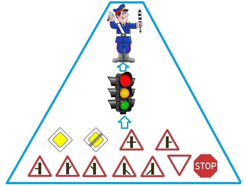 В более подробном виде Принцип Приоритетности регулирования дорожного движения выглядит так:
