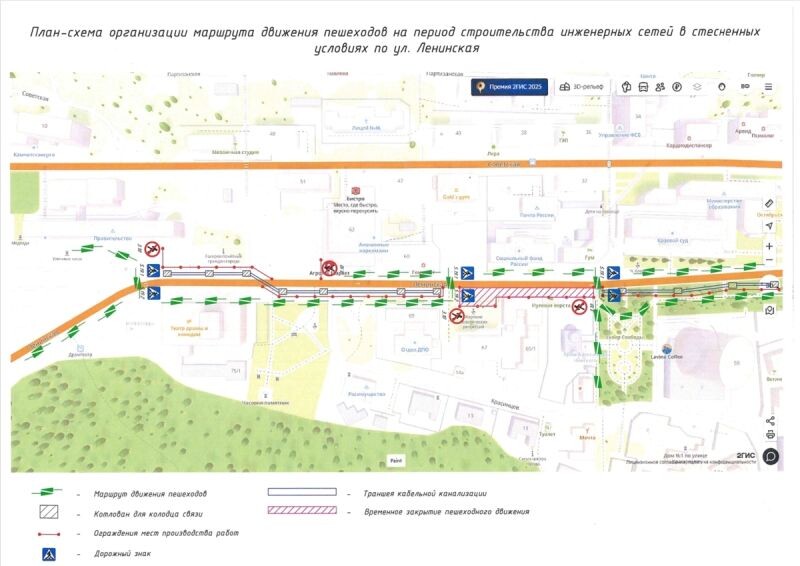 📌 Схему движения пешеходов разработали на время перекрытия Ленинской