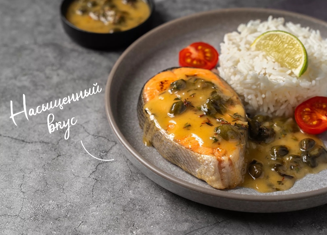 Тихоокеанская чавыча — представитель семейства лососевых. Рыба не нуждается в большом количестве приправ. Чтобы оттенить ее естественный вкус, достаточно легкого соуса с белым вином, чесноком и петрушкой. Обжарьте стейки, отложите в сторону и на этой же сковороде приготовьте соус. Прогрейте в нем рыбу несколько минут и сразу же подайте. Для гарнира идеально подойдет дикий рис или овощи, приготовленные на пару. Чавыча 1 кг = 1000 г Растительное масло 1 ст. л. = 17 г Соль 0.5 ч. л. = 3.5 г Черный молотый перец 1 щепотка = 1 г Белое сухое вино 1 стакан = 200 г Тимьян/чабрец 1 пучок = 30 г Каперсы 2 ч. л. = 10 г Лимон 0.5 шт. = 60 г Чеснок 4 зубчик = 20 г Сливочное масло 40 г Дикий рис по желанию Салат-латук по желанию Разморозьте стейки чавычи. Промокните рыбу от влаги бумажными полотенцами. Почистите чеснок. Ополосните петрушку. Подготовьте миску и сковороду. Лучше всего размораживать рыбу в холодильнике. Заготовке потребуется 8–12 часов, чтобы оттаять. При этом она хорошо сохранит