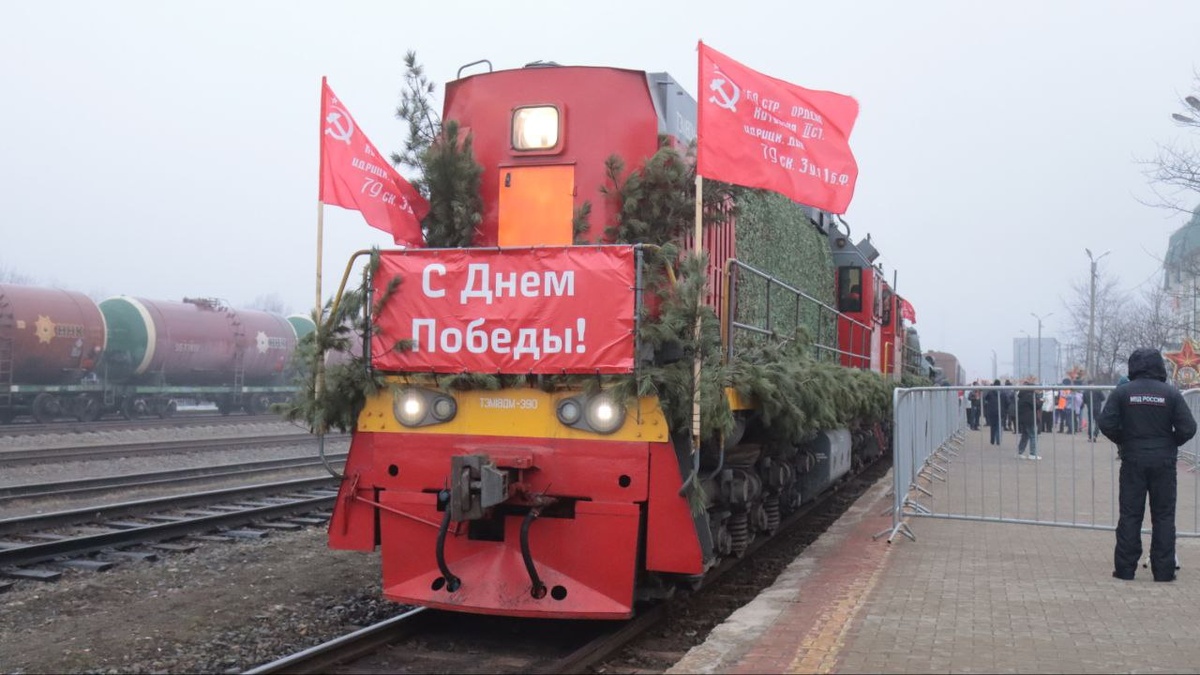 Со 2 по 4 мая уникальный «Поезд Победы» проехал по Сахалину. За три дня состав с военной техникой преодолел более 800 километров, сделав остановки в восьми населённых пунктах: Ногликах, Тымовском, Смирных, Поронайске, Макарове, Взморье, Долинске и Южно-Сахалинске. И везде встречали жители музей на колёсах – поезд, украшенный еловыми ветвями и флагами, с платформами, где размещались легендарные образцы военной техники времён Великой Отечественной войны. Центральными экспонатами стали тяжёлый танк ИС-2, автомобиль ГАЗ-67Б, артиллерийские орудия, полевая пушка БС-3 и пулемёт «Максим». В теплушке гости могли окунуться в атмосферу военных лет. Перед прибытием поезда на вокзалах проходили праздничные концерты – звучали песни военных лет и стихи. Артисты местных культурно-досуговых центров создавали праздничное настроение. В Поронайске, например, выступали участники школы искусств, проводились мастер-классы по плетению сетей, рисованию и созданию значков с георгиевскими лентами. Работники пое