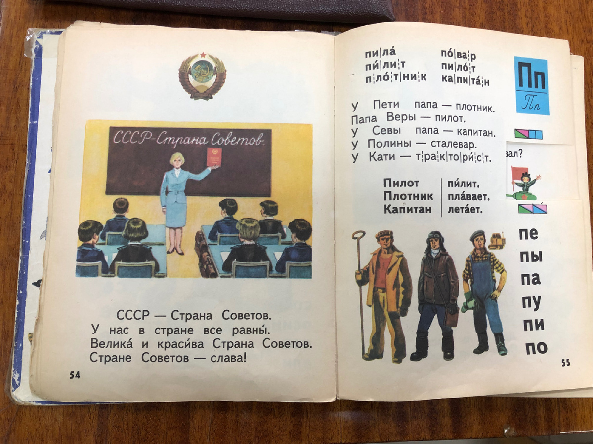 С удовольствием полистала советские учебники и тетради. В начальную школу ходили с портфелями, редко у кого был ранец. Один раз я даже привязала ленточки, чтобы ощутить как это. А сейчас ранцы у всех детей всех цветов и габаритов. Позже пошла волна дипломатов. Открываешь, всё разложено как надо-тут тетрадки, тут учебники-красота! А еще мы клеили на них переводилки, как на фото ниже. Сначала у меня была немецкая овчарка, потом портрет очаровательной девушки. Насколько я помню, этого сокровища не было в продаже, мы выменивали в школе у других. Во всех магазинах как на пьедестале гордо стояли кассовые аппараты с характерным звуком при работе. Про счеты вообще молчу. Я прямо мечтала иметь дома такие! Чтобы во-о-от такого размера и уметь быстро считать на них. Для девочек был такой выбор профессий: продавец, повар и швея. Я выбрала первый вариант. Вот там-то нас и обучили как считать-от и до (и не только этому). Довольно-таки интересно и познавательно. Это чуть позже начал