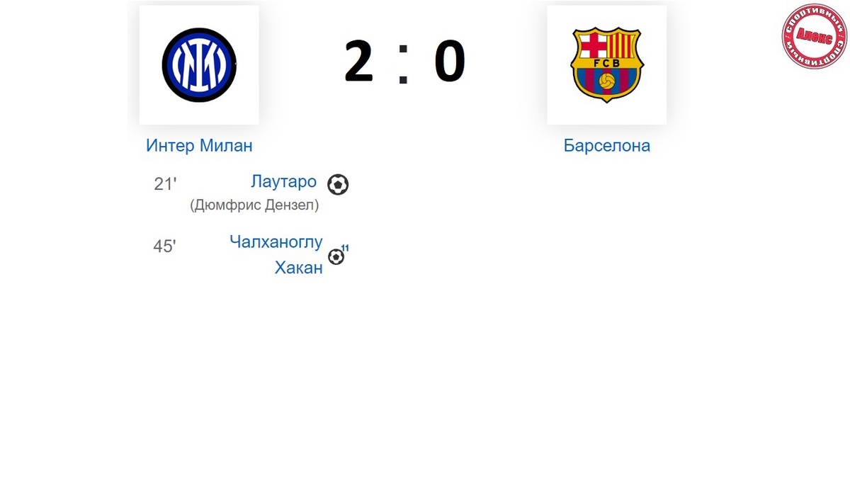 Миланский «Интер» в шикарном, фантастическом матче вырвал победу у испанской «Барселоны» и вышел в финал Лиги чемпионов. В ответной игре команды выдали настоящий голливудский триллер, выявив сильнейшего лишь в овертайме. Как и в первой игре «Интер» вновь вёл по ходу матча со счётом 2:0. Сначала Думфрис на 21-й минуте вывел Лаутаро на пустые ворота, а затем Чалканоглу реализовал пенальти (45+). Но во втором тайме всё поменялось, и каталонцы трижды огорчили соперника. Отличились Эрик Гарсия (54), Дани Ольмо (60) и Рафинья (87-я) - 3:2. Но удержать преимущество подопечные Ханса – Дитера Флика не смогли. В компенсированное время итальянский защитник Франческо Ачерби восстановил статус-кво. Как и в первой игре счет стал ничейным - 3:3. Таким образом, всё решалось в овертайме, где «Интер» смог вырвать победу на 99-й минуте, когда точным ударом отметился Давиде Фраттези. Миланцы проходят в свой 7-й финал Лиги Чемпионов с общим счетом 7:6. В решающем матче итальянская команда 31 мая в Мюнхене