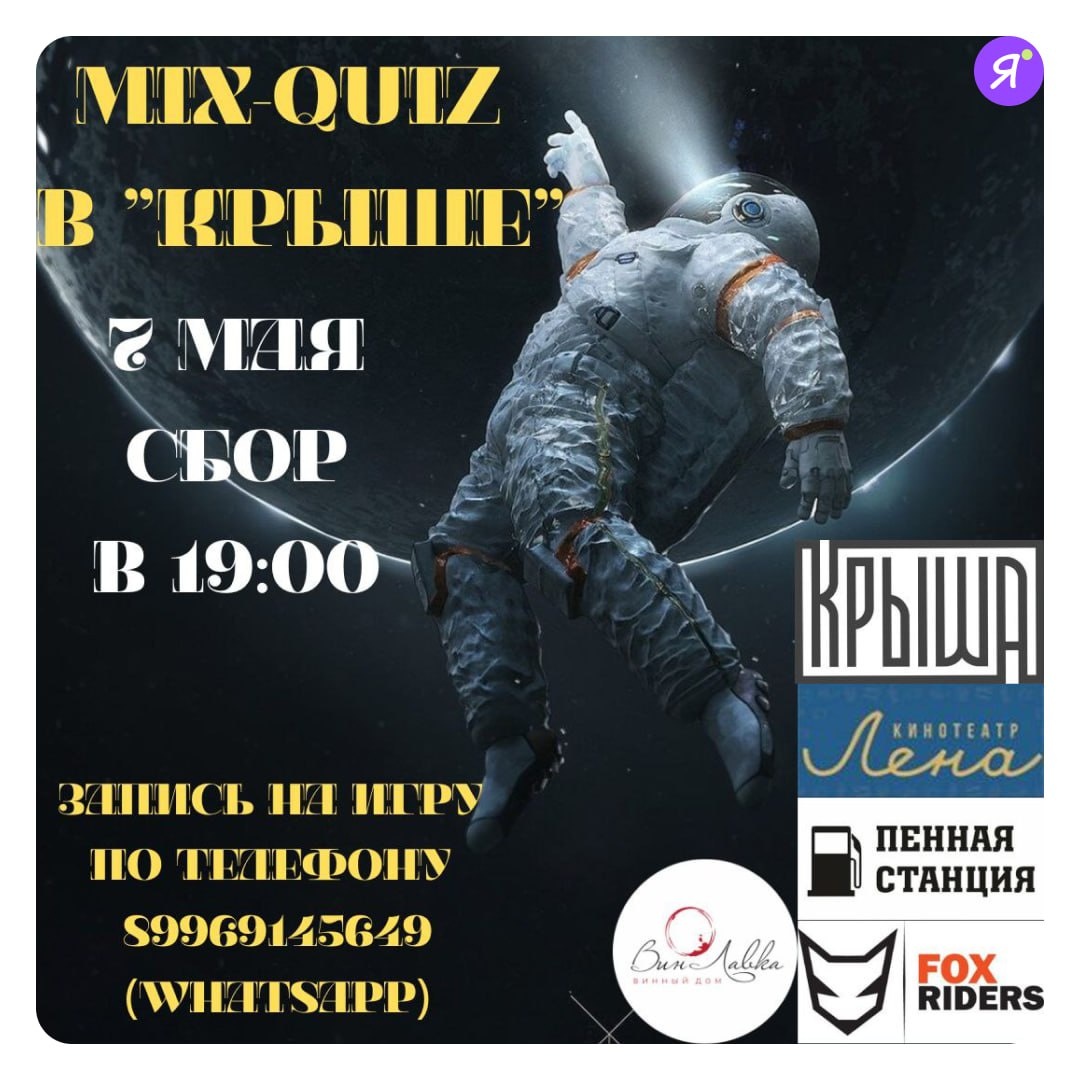 MIX-QUIZ #Вечером Погрузись в мир кино, музыки и невероятных фактов. 3 раунда, 90 вопросов, море драйва и смеха Игра для команд от 2х и более человек Сегодня (7 мая) | 19:00 Крыша, Кальвица, 14/1а 500 руб. +79969145649 Online Якутия | Подписаться