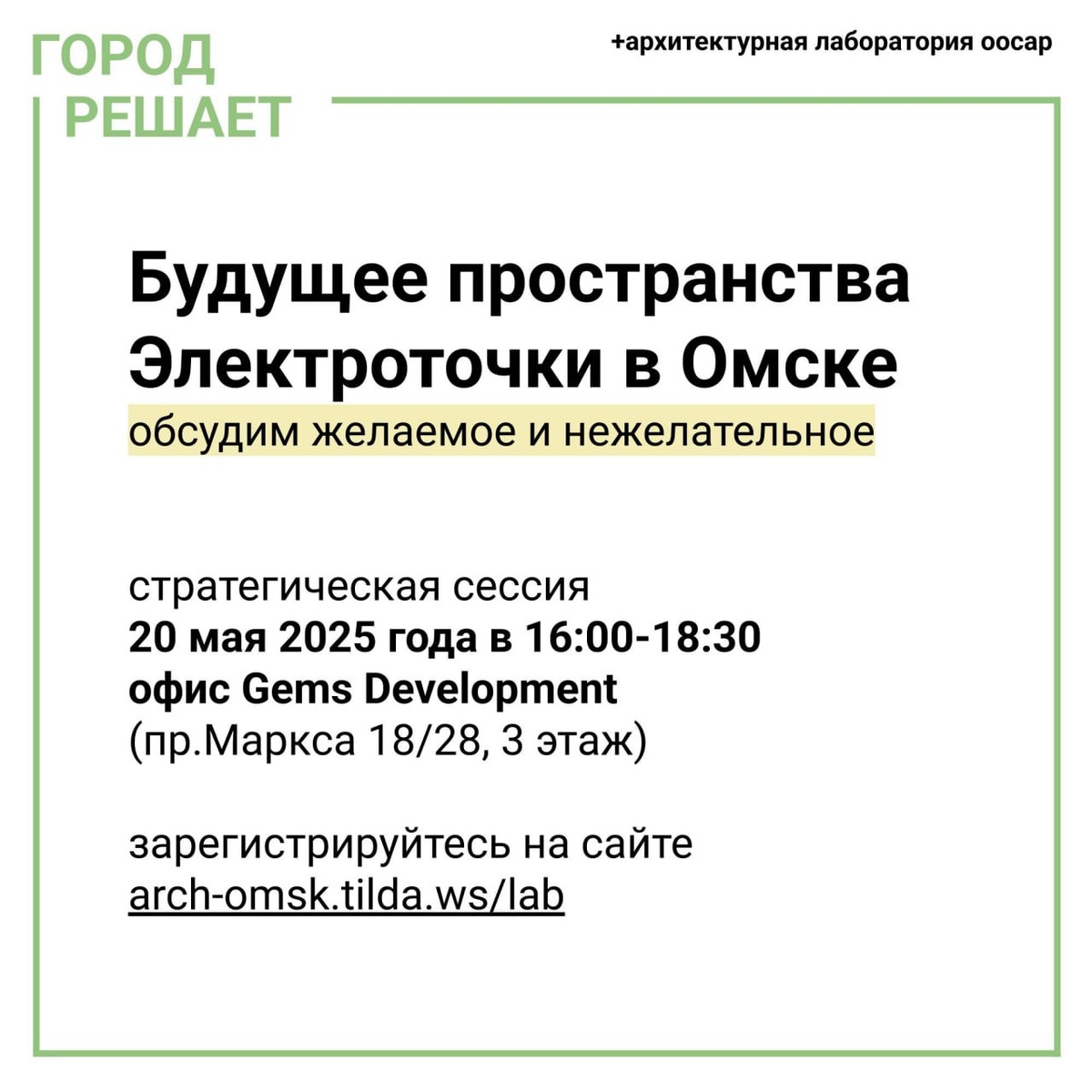🏭Стратегическая сессия «Будущее пространства Электроточки в Омске» состоится 20 мая 2025 года