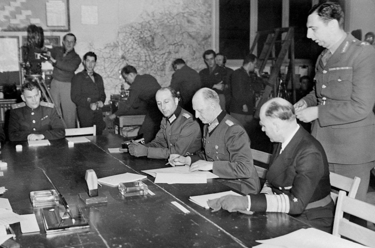 🔴🔴🔴🔴🔴🔴🔴 2️⃣ 😶😶😶😶😶😶😶 😶😶😶😶😶😶 Заместитель Верховного Главнокомандующего Вооружёнными Силами СССР Маршал Советского Союза Георгий Константинович Жуков подписывает Акт капитуляции Германии от имени советского командованияКапитуляция фашисткой Германии в Реймсе, 7 мая 1945 года. 🇷🇺🇷🇺🇷🇺🇷🇺🇷🇺🇷🇺
