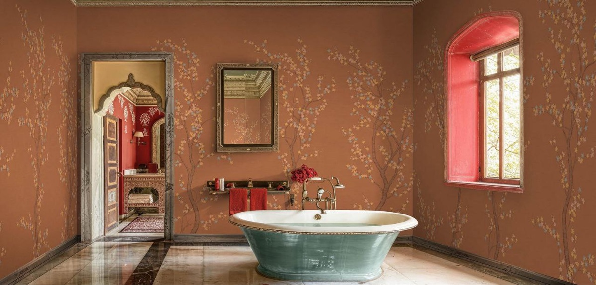 Панорамные обои из каталога #InfinitoWalls@affrescoru (арт. Affresco 2369-COL2) на стене выполнены в нежных, пастельных тонах на терракотовом фоне и изображают ветви с цветами, создавая атмосферу спокойствия. Рисунок обвивает стены, придавая интерьеру гармонию и эстетичности. - Заказать фрески, панно, обои и ткани можно в нашем интернет магазине. 📞 8-800-555-31-51 📨 Salon@affresco.ru 🌏 affresco.ru ⏰Срок изготовления от 5 раб дней ✈ https://dzen.ru/id/5f710c51fe660a4af44007cb - #affrescoru #affresco #аффреско #фрески #обои #фотообои #обоидлястен #дизайнинтерьера #wallpaper #mural #фрескиназаказ #affrescoruвинтерьере #wallart #muralart #designinterior #настенныеобои #wallmural