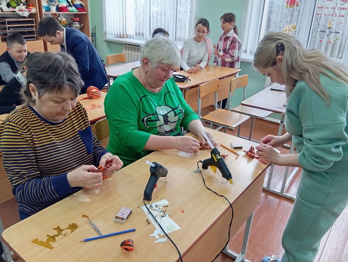 Жёны и матери участников СВО из села Каран изготовили праздничные брошки В школьном волонтëрском штабе "Мы вместе" состоялся мастер-класс по изготовлению брошей из Георгиевской ленты, организованный советником директора по воспитанию Зульфией Мансуровой. Георгиевская лента олицетворяет подвиги наших предков и их самоотверженность. Этот мастер-класс стал не только возможностью для женщин проявить свои творческие способности, но и способом выразить уважение к тем, кто защищает нашу страну. Участницы смогли создать уникальные изделия, которые будут напоминать о значимости памяти и патриотизма.