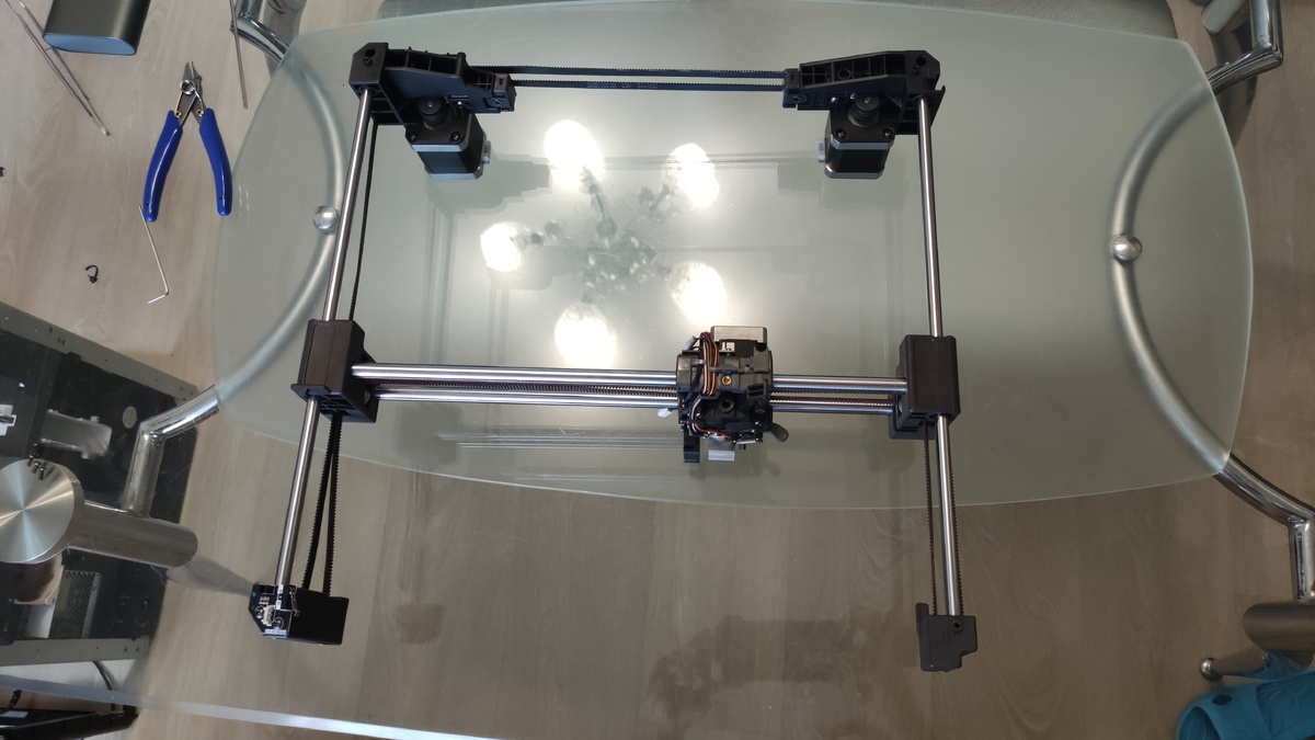 Привет технарям в нашей профильной рубрике! Прошло несколько месяцев с нашей предыдущей переделки, напомню - ранее мы переводили на карбоновые валы К1Макс. Так вот, прошедшие месяцы интенсивной эксплуатации показали, что пара трения работает отлично, ptfe-трубка не истирается, карбоновый вал не стачивается. Несколько десятков килограмм использованного пластика доказали мне правильность выбранного решения по облегчению суммарного веса подвижной кинематики. А тем временем была успешно продана кобра 3 и на её место в лаборатории пришла свежевыпущенная кобра s1, про которую на тот момент еще никто практически ничего не знал. В принципе принтер забавный, на сегодня о нем уже почти всё известно, есть как всегда и плюсы, и минусы, и свои особенности. Мысль поменять валы была сразу, так давайте делать:Особенностью данного принтера является то, что он собран на винтах. Много винтов, очень много. Рама под внешней оболочкой вся состоит из кусочков на винтах. Но при этом портал с валами, ремнями и