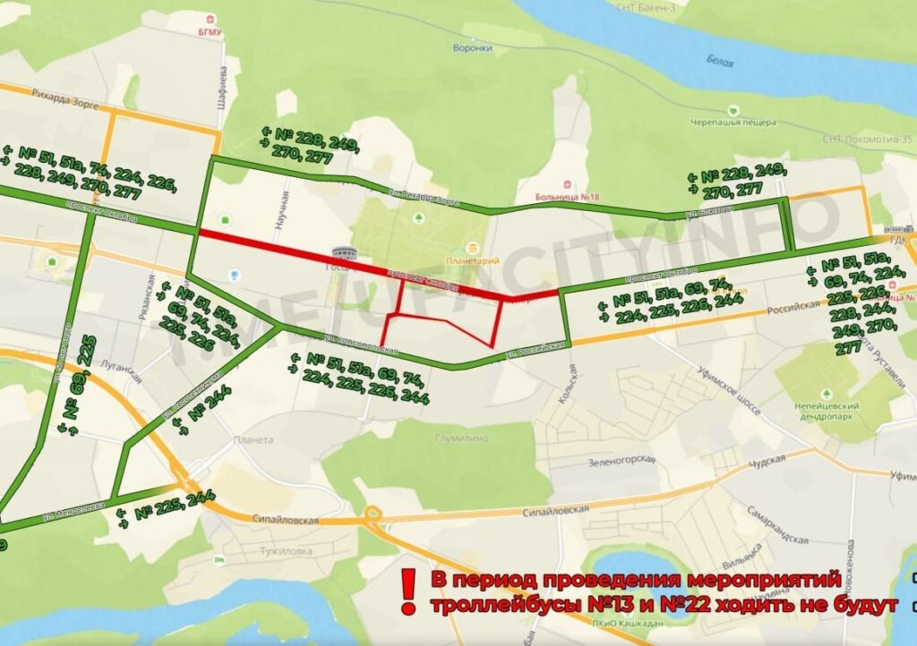7 мая в столице Башкирии пройдут проведут генеральную репетицию Парада Победы. По этому поводу на четыре с половиной часа ограничат движение на проспекте Октября и соседних улицах. С 17:00 до 21:30 для транспорта будут перекрыты проспект Октября от улицы Шафиева до Кольской; Южный проезд от проспекта Октября до Российской; Северный проезд от проспекта Октября до Российской; улица Новогорная от Южного до Северного проезда. – Выезды из дворов, расположенных в зоне действия перекрытий, будут заблокированы! – предупредили в мэрии. – Если во время перекрытий вы планируете поездки на личном транспорте – лучше припарковаться в другом месте Схема движения автобусов на это время изменится. Также не будут ездить троллейбусы № 13 и № 22. Кроме того, до 14 часов ограничено движение транспорта на улице Советской от улицы Заки Валиди до Тукаева. Это предпринято для обеспечения безопасности во время траурной церемонии прощания с депутатом Государственной Думы России, почётным гражданином Уфы и бывшем