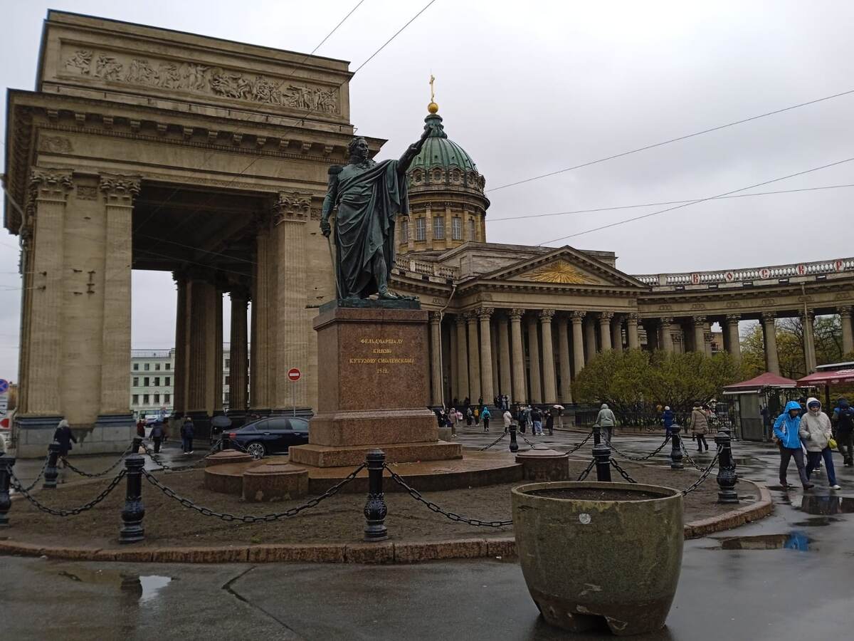 Пока шла до Казанского собора, шел дождь, и у меня намокли брюки, и стали замерзать ноги.